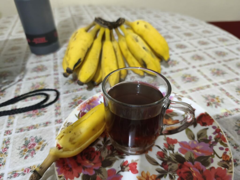 D’abord une mauvaise nuit car il m’a été impossible de me rendormir à 2h30. Puis à 5h30, Bomba se lève et vaque à ses occupations dans la cuisine et sur la terrasse. Réveil à 6h45 quelque peu douloureux. Elle m’a préparé un thé ; j’avais la petite banane que Bindu m’avait offerte hier soir et dès qu’elle l’a vue, Bomba est montée m’en chercher une main (au moins dix !).