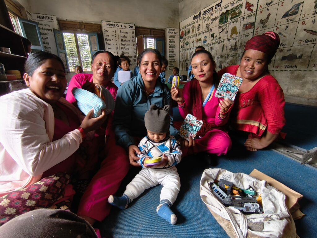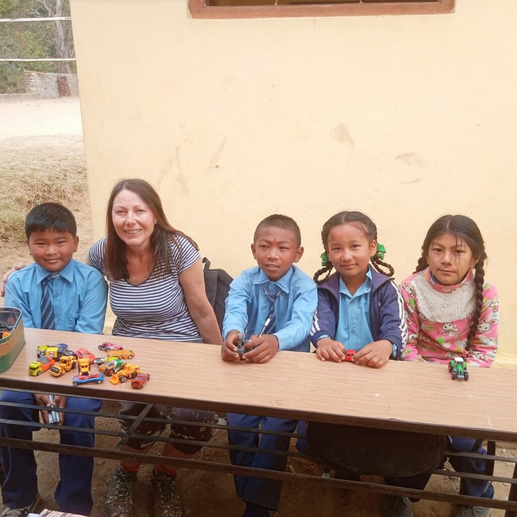 En fin de matinée, accompagnée de Basanta, je suis accueillie dans la classe de maternelle pour remettre des cadeaux que j’avais apportés pour les enfants :