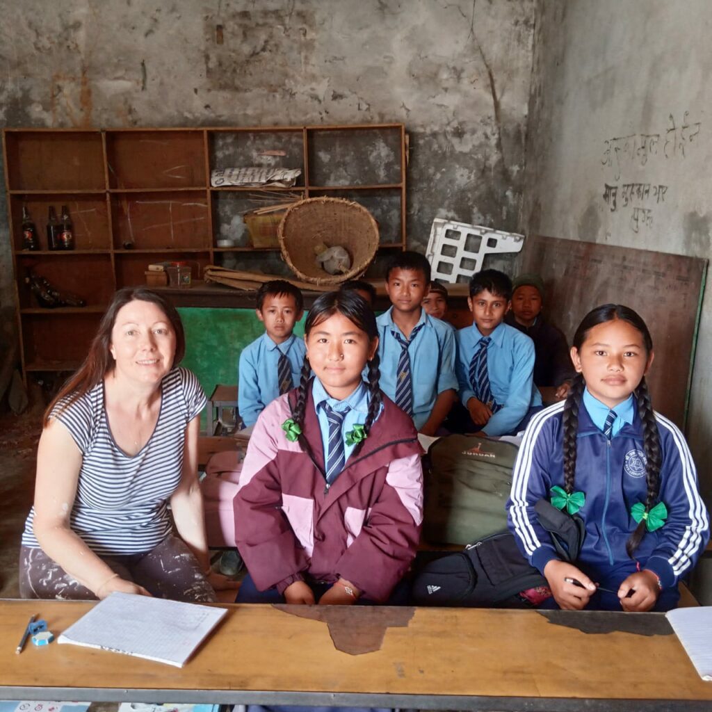 Oh, mais il est grandement l’heure du Dal Bhat pour le déjeuner ! Cet après-midi… à vos pinceaux et rouleaux messieurs dames ! Toujours dans la bonne humeur, avec les enfants qui passent et les sourires intrigués des femmes. Quelques-unes s’approchent de temps en temps avec toujours la même première question : « Quel âge as-tu ? ». J’adore ce pays, car personne ne croit à mes 50 ans 😉 !