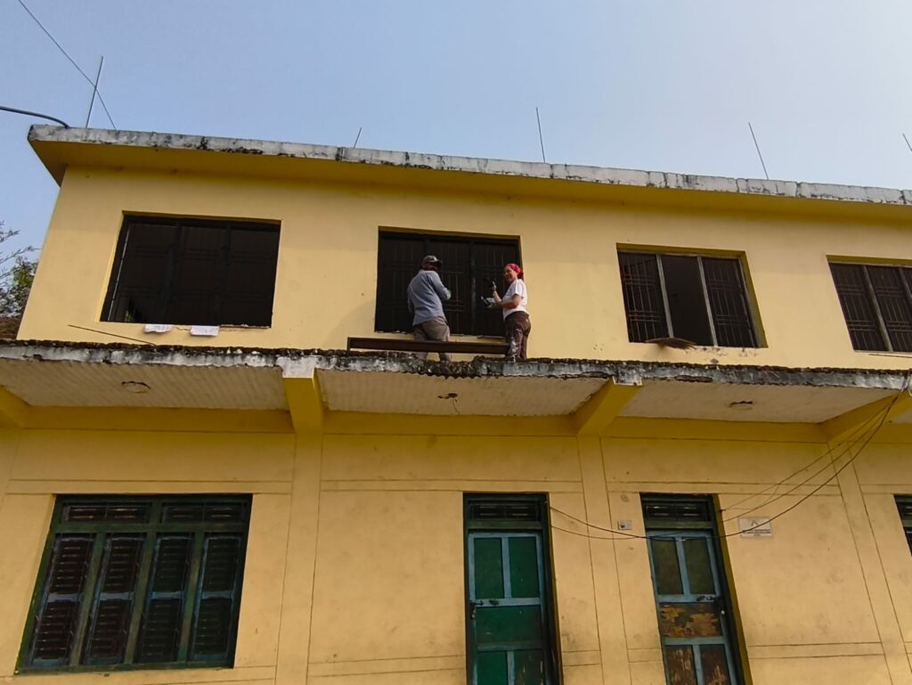 Nous sommes vendredi, les cours se terminent à 13h15, excepté pour les élèves de classe 10. Pour l’après-midi, nous restons à l’intérieur pour attaquer la rampe d’escalier du bâtiment principal. Une jeune fille m’offre de belles fleurs jaunes ; ces attentions sont toujours très touchantes.