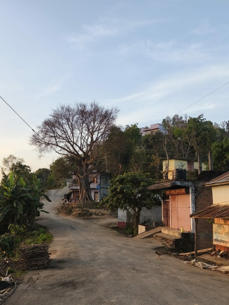 Le panneau de Baricuna se profile, l’école rénovée se trouve sur notre gauche, nous bifurquerons sur le petit chemin à droite dans le grand virage. Dix minutes plus tard, Thatibhanjyang nous accueille. Bindu m’attend sur la place. Je prépare son paquet et la rejoins rapidement. Elle m’invite à prendre un milk tea malgré l’heure (je garde pour moi l’heure passée chez elle en famille, moment perso).