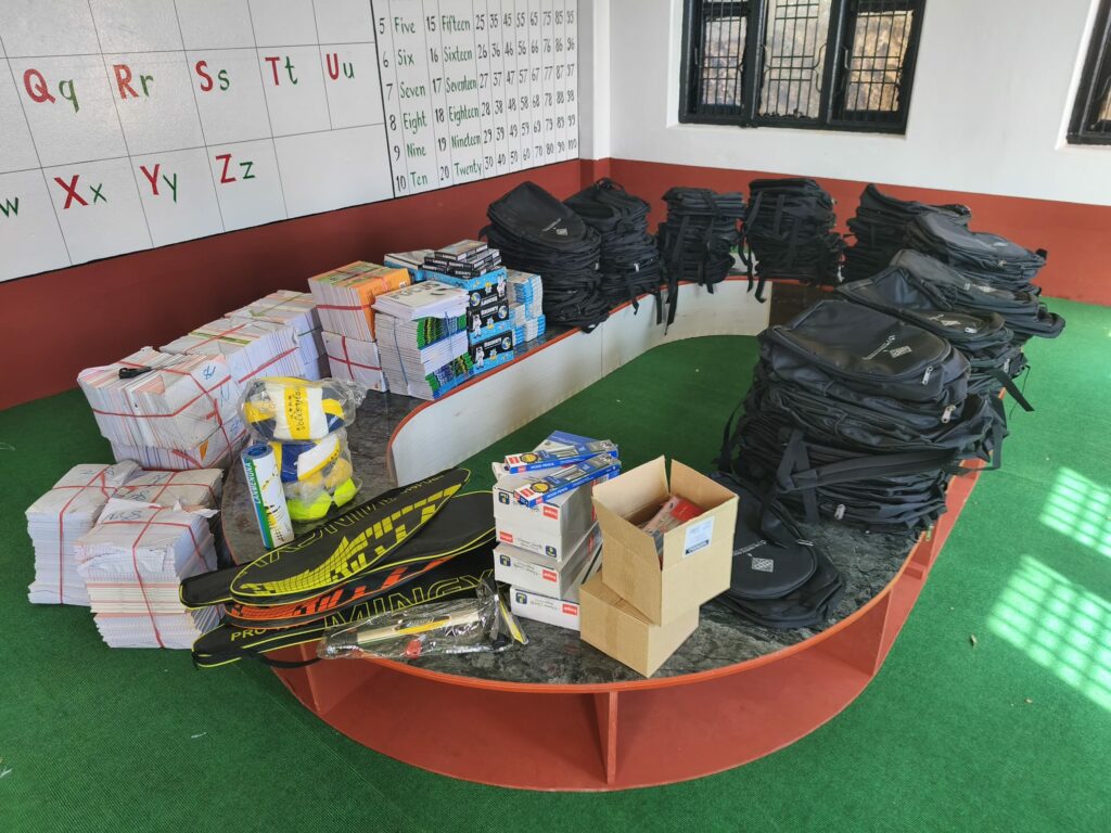 Sont également prévus des ballons de foot et de volley, des raquettes et des volants de badminton. Tout est prêt pour la remise officielle et la distribution des uniformes ce vendredi. L’artiste peintre est aussi de retour : il a ajouté les mois, les jours de la semaine et commence les illustrations de l’alphabet népalais.