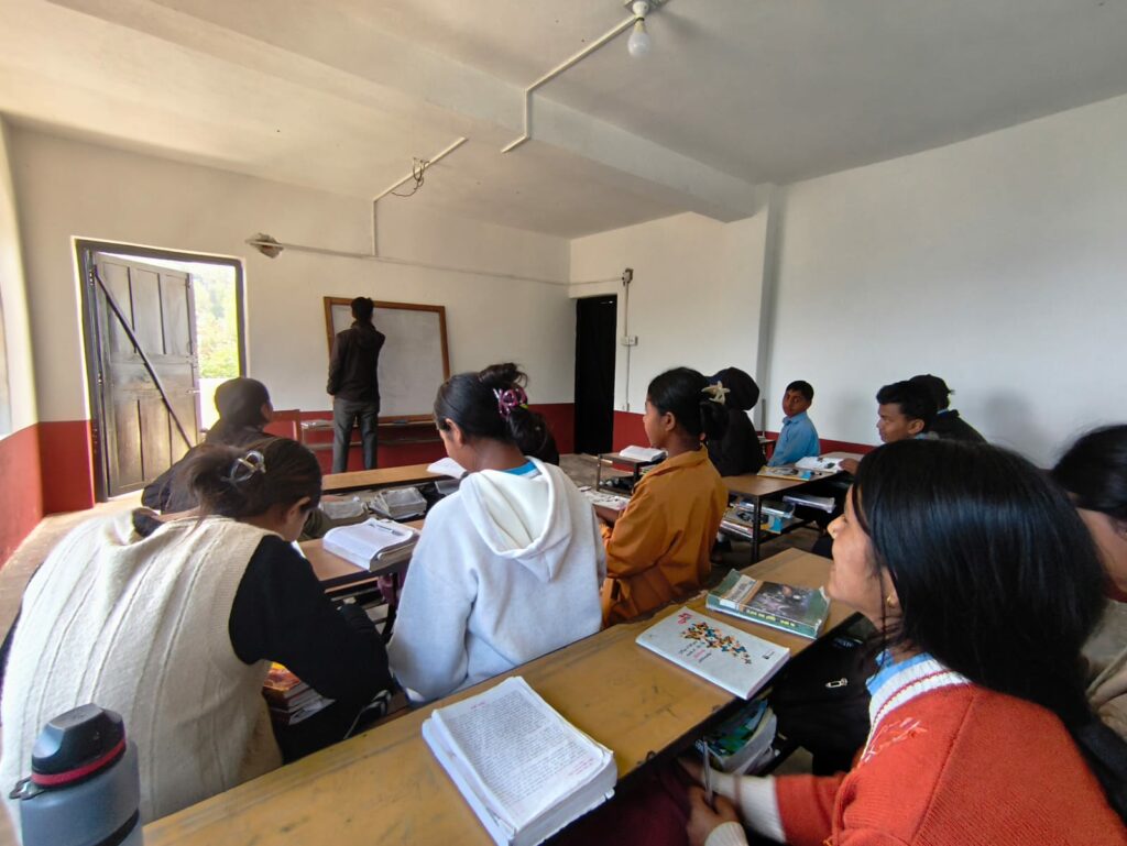 Leur professeur, Binod Kanal, m’a accueillie avec plaisir au fond de la classe. Pour ce cours de physique-chimie, l’intégralité du programme a été étudiée ; l’examen étant dans un mois, l’heure est aux révisions. Un élève est désigné par sujet, se rend au tableau et procède à la démonstration. Les élèves, extrêmement volontaires, se corrigent entre eux en toute bienveillance.