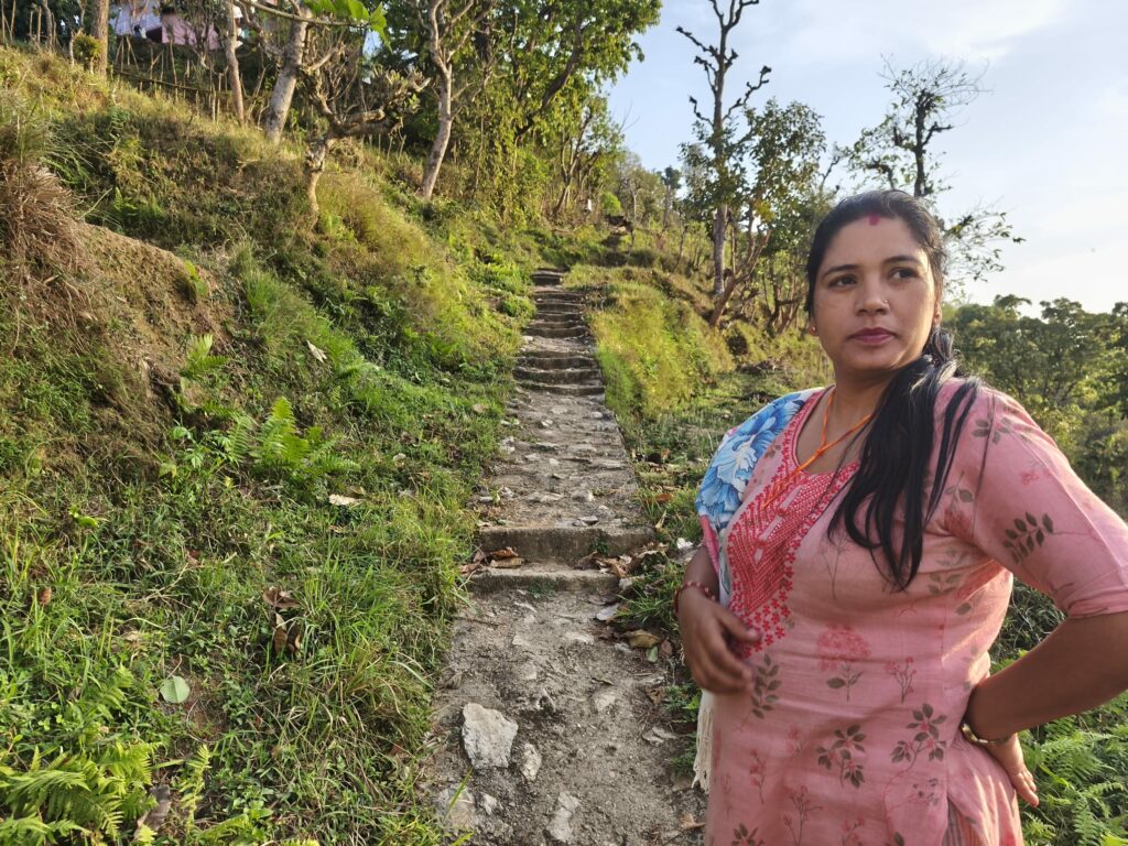 Nous finissons notre tour de l’autre côté de la colline en rejoignant la route. Bindu me demande si en France aussi, les femmes qui n’ont eu que des filles mais pas de fils sont discriminées et plus ou moins écartées de leur famille. Cette remarque est difficile à entendre. Elle m’explique que seul son mari la soutient, qu’ils sont soudés face à cette tradition vécue comme une violence psychologique.