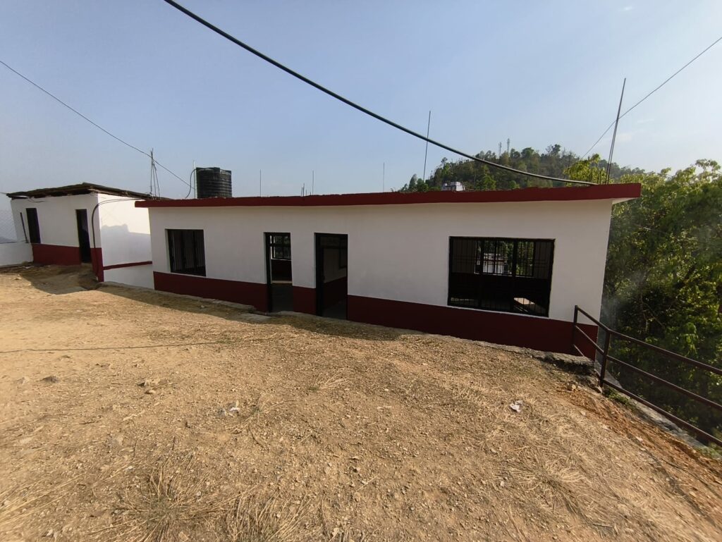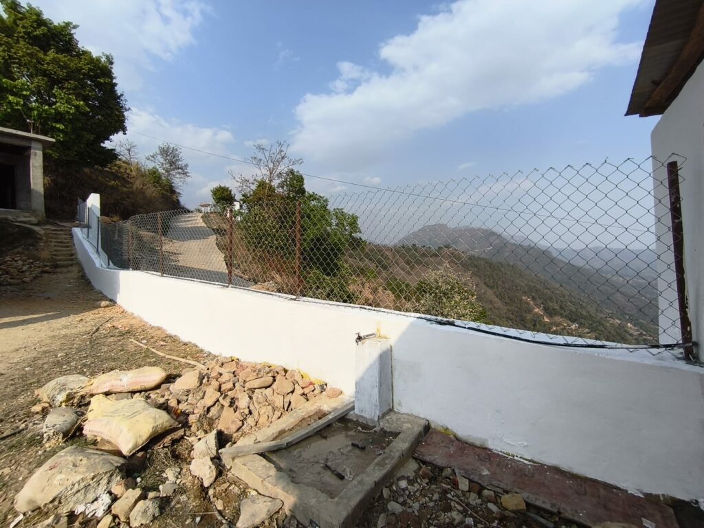 6h45 difficile, la nuit avait bien commencé jusqu’au concert des Kukur (les chiens) à 4h du matin. Thé de Pompa, Chapati légumes de Rama, encore un thé et c’est parti ! Kam ma Jam, ou presque : pas de peinture pour commencer l’escalier. Jay et deux jeunes du village peignent la façade du bâtiment côté village, ça va être superbe !